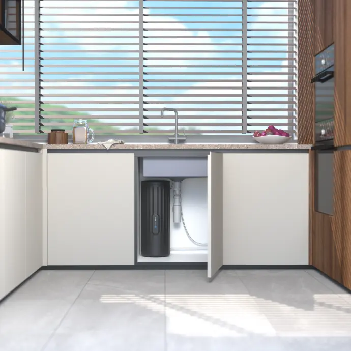 - Gagnez de la place sur votre plan de travail: Ultra compact, il se pose sous l'évier verticalement ou horizontalement.