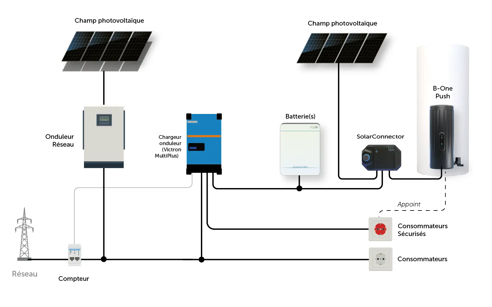 - sans remplacer l'onduleur et tous les avantages du système Wanit